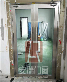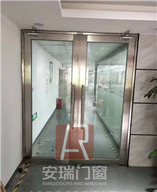 <不銹鋼門套地彈簧門改造成玻璃防火門效果>