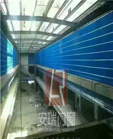 雙軌雙簾無機布特級防火卷簾主要適用與大型停車場、大型超市、圖書館、倉庫、機場、酒店、人防工程、物流中心、家具超市等場所。