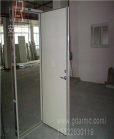 (3)隔音防火門:在門扇木框架中嵌填巖棉等吸音資料,內部用石棉板、鍍鋅鐵皮及耐火纖維板鑲包,周圍裂縫用海綿橡皮條粘牢封嚴。